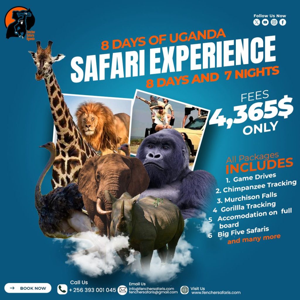 Embark on a premium 8-day journey through Uganda’s most iconic wildlife reserves. This package is the ultimate safari adventure, featuring thrilling game drives to spot the Big Five, and exclusive tracking experiences for both chimpanzees and mountain gorillas. Witness the power of Murchison Falls and immerse yourself in the heart of Africa’s untamed wilderness.